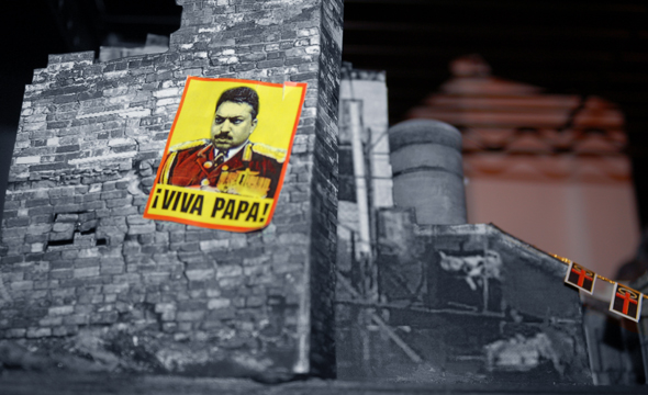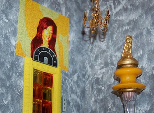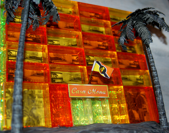 The lobby of the Casa Mona. We tried to include as many details from Vonnegut's novel in the models as possible, both for accuracy and as Easter eggs for fans of the book. One of these was the large mosaic of Papa Monzano's adopted daughter Mona (as portrayed by actress Michelle Rabbani) seen above the elevator door.